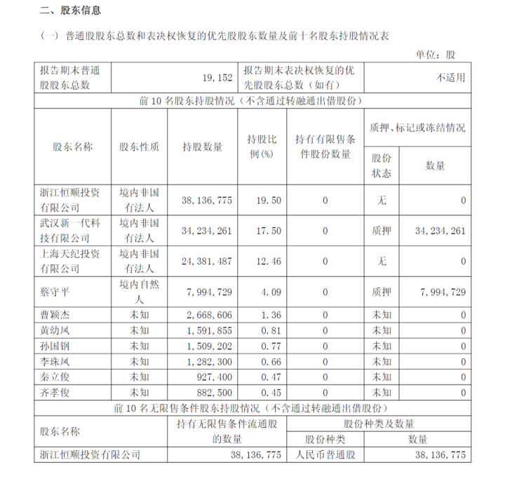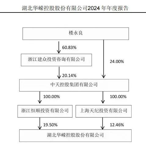 *ST华嵘一季报显示,公司控股股东为浙江恒顺投资有限公司,持股比例为19.5%。控股股东与第三大股东上海天纪投资有限公司为一致行动人、同由中天控股集团有限公司控股,合计持有上市公司31.96%股份。*ST华嵘实控人为楼永良。